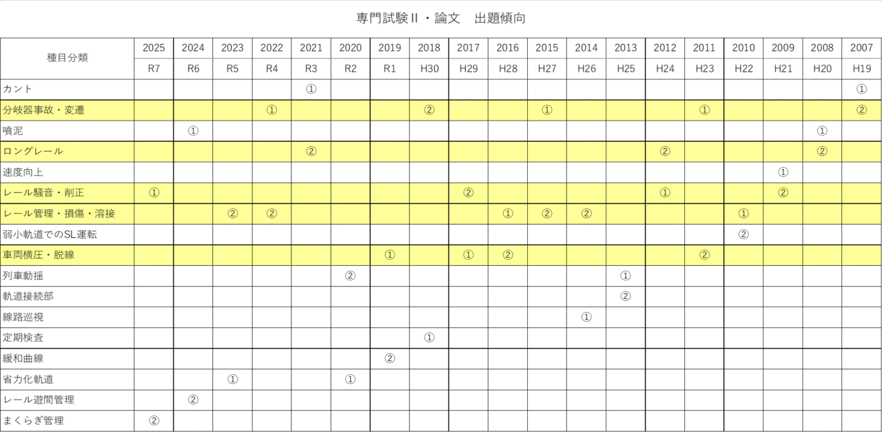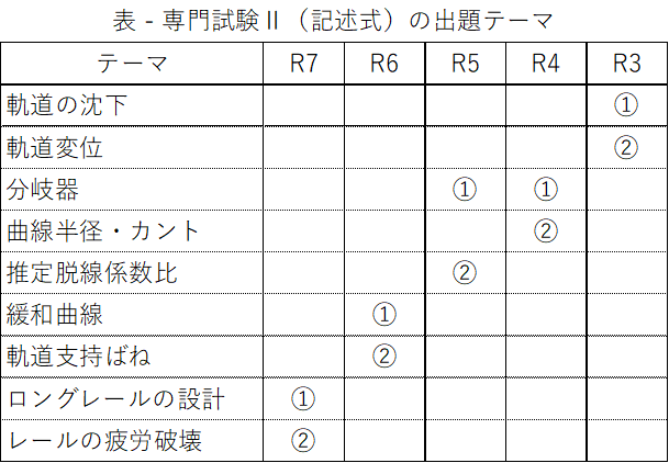 問題の内訳は2020年度までと同様、保線問題2問+土木問題2問の計4問から1問を選択して回答する形式ですので、保線屋は保線問題1問を選択すると思いますが、これまでどおり広く保線についての見識を高めておく必要があります。
